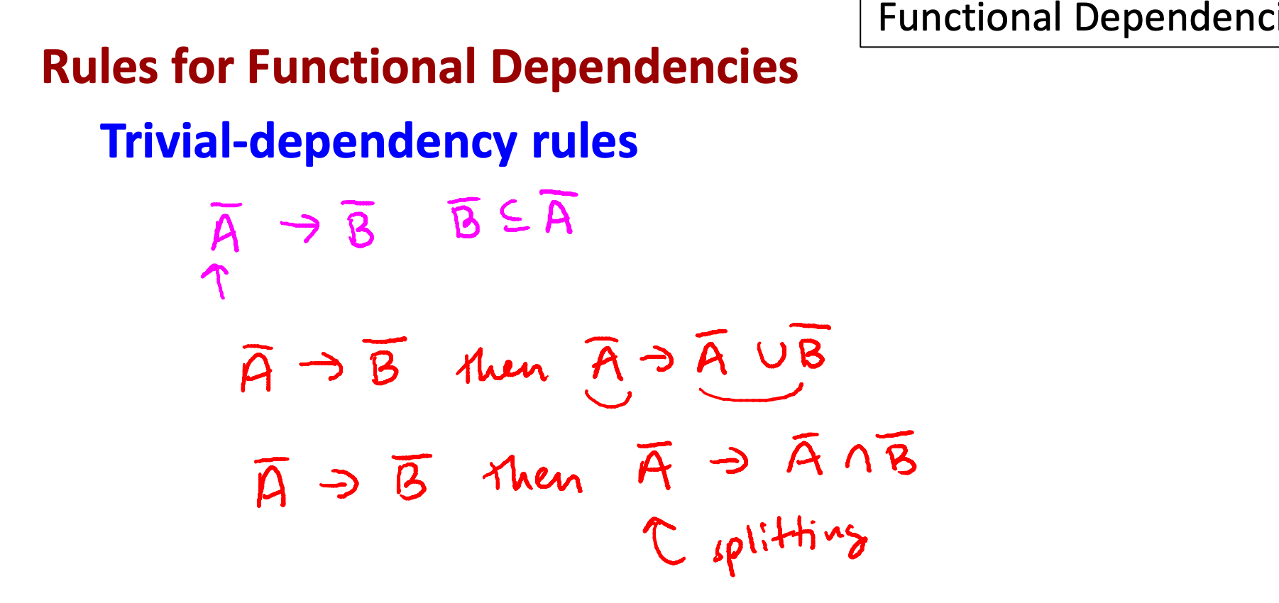 함수적 종속(FD)에서 Armstrong's Axioms 중 하나인 augmentation rule(확장 규칙)에 기반한 자명한 종속성(trivial dependency)의 성질을 다룬 규칙