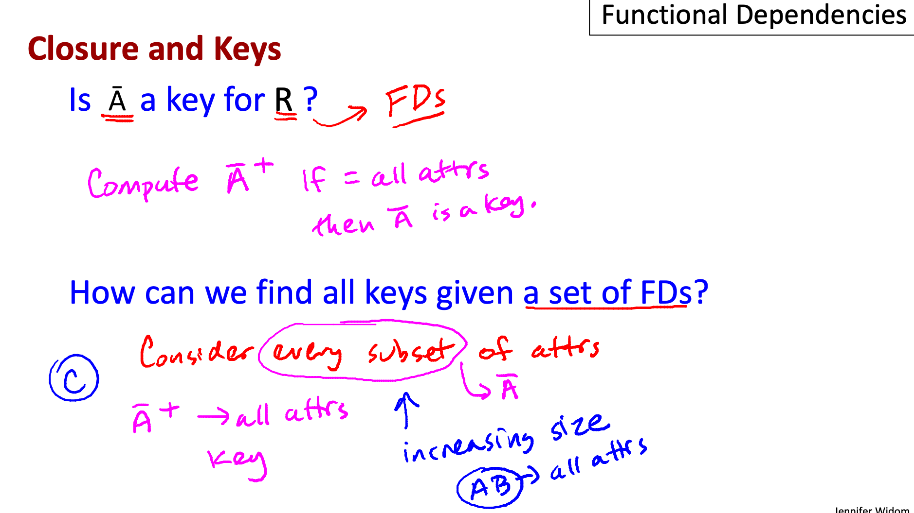 Functional Dependencies generalize the notion of keys.