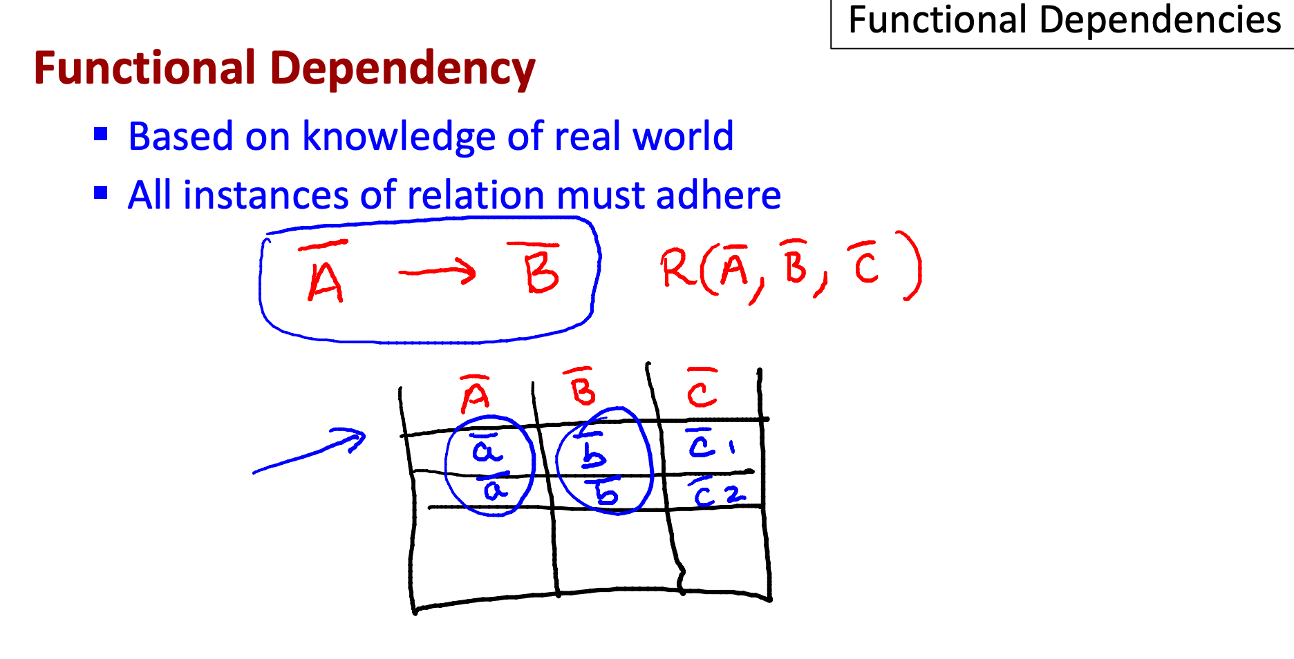 현실 세계의 제약 사항을 잘 파악하고 functional dependencies로 잘 translate 해야 한다.