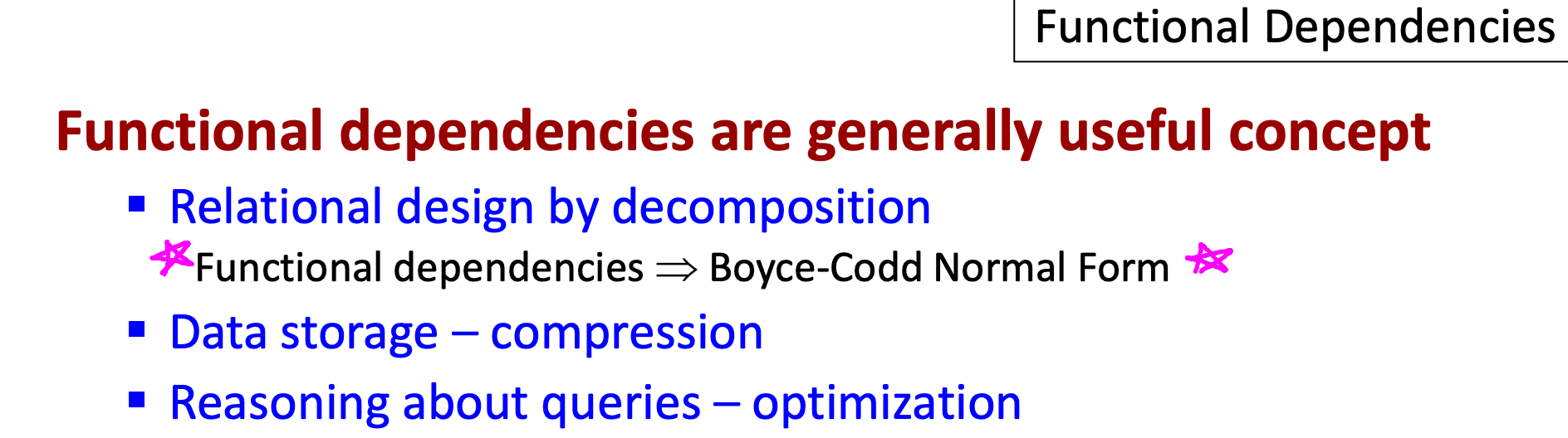 Boyce-Codd 정규화를 하기 위해 Functional Dependencies를 이용한다.